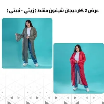 2 كارديجان شيفون منقط اللون ( زيتي - نبيتي )